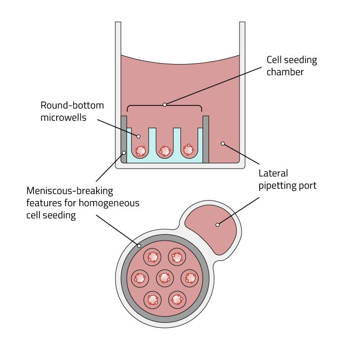 • U-shaped microcavities made of PEG hydrogel ensure consistent, uniform organoid formation for reliable 3D culture results.