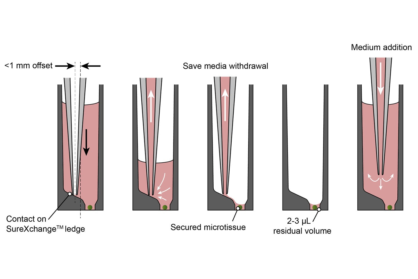 • Unique SureXchange™ ledge engineered to prevent unintended spheroid/organoid aspiration